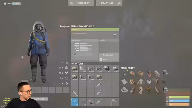 01:23:59Vor dem finalen Raid wird die Ausrüstung besprochen. Die Thompson wird als sehr effektiv eingeschätzt, während auch ein Double Launcher als Option in Betracht gezogen wird. Es wird entschieden, dass jeder Spieler mehr Stoff für ein Bag auf dem Tuckboot mitnehmen soll, um die Ressourcen zu transportieren. Eine Tür wird als zusätzliche Ausrüstung für das Boot mitgenommen.