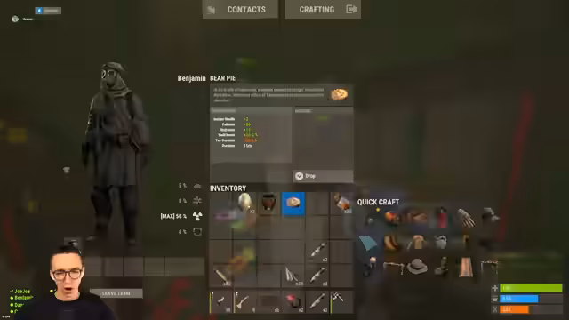 01:29:54Der Streamer bereitet den Raid vor, indem er Ressourcen wie Holz und Metal sammelt und Waffen wie Rocket Launcher und C4 vorbereitet. Er plant, durch die HQ-Mauer zu brechen und bittet seine Teammitglieder, sich für den Angriff bereit zu machen. Gleichzeitig werden spielerübergreifende Diskussionen über Rezepte wie Beef Wellington geführt, was den ständigen Wechsel zwischen Spielstrategie und Alltagsunterhaltung zeigt.