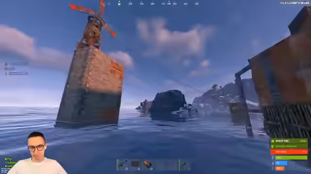 04:12:39Im Stream wird ein FPS-Test anhand einer Container-Base durchgeführt. Der Test zeigt einen massiven Leistungseinbruch, wenn die Container bunt eingefärbt werden, im Vergleich zu einheitlich weiß geskinten Containern. So sinkt die FPS-Zahl von 150 auf 45, was die Streamer verblüfft. Sie diskutieren, ob dieser Test auf einem privaten Server überhaupt sinnvoll ist und vermuten, dass Faktoren wie Serverauslastung den Testergebnissen beeinflussen könnten.