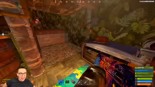05:00:22Die Spieler bereiten sich auf einen Raid vor, indem sie Explosives herstellen und die Basisstruktur der Gegner mit einem Bauplan analysieren. Währenddessen kommt es zu unerwarteten Kämpfen. Ein Spieler wird von einem Gegner mit einem Assault Rifle getötet, kann aber schnell wiederbelebt werden. Es stellt sich heraus, dass die Gegner eine LR und eine Thompson besitzen, was die Spieler motiviert, diese Waffen zu erbeuten. Ein weiterer Kampf führt dazu, dass ein Gegner mit einer AK ausgeschaltet wird, was die Ausrüstung der Spieler weiter verbessert. Die Spannung steigt, da die Spieler sich bewusst sind, dass ihre eigene Basis ebenfalls zum Ziel werden könnte.