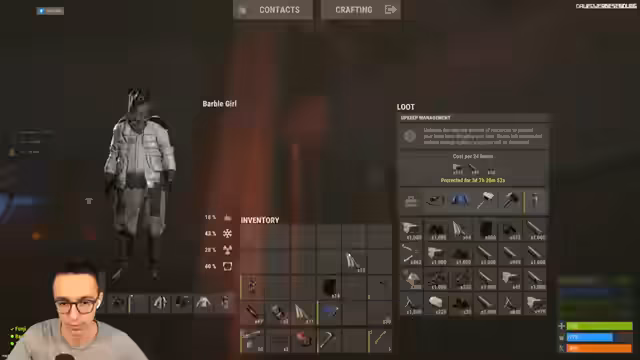 01:50:05Die Streamer konzentrieren sich auf den Bau ihrer Basis, stellen fest, dass sie keineOfen haben, was die Progression behindert. Während der Farm-Tour bemerken sie, dass die Sulfur-Knoten leer sind und es viele Leichen gibt. Es gibt einen Raids auf ihre Basis, bei der wichtige Ausrüstung, wie ein Thompson und eine Crossbow, gestohlen wird. Sie reagieren, indem sie versuchen, die Angreifer zu verfolgen und ihre Ausrüstung zurückzuholen, verlieren aber erneut einen wichtigen Gegenstand, die Pitu.