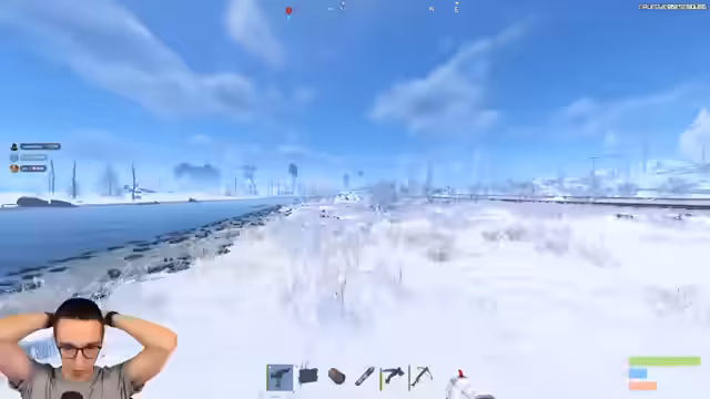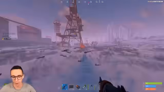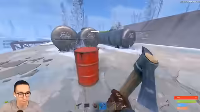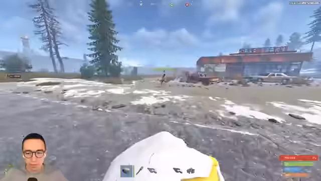 00:14:00Nach technischen Startschwierigkeiten wird der Spawn in Rust erfolgreich abgeschlossen. Das Team beginnt mit dem Farmen von grundlegenden Ressourcen wie Holz und Stein. Es gibt erste Begegnungen mit neutralen Bären und einer anderen Spielergruppe. Ein Spieler wird getötet und das Team plündert dessen Ausrüstung, darunter ein wichtiges Fragment für ein Monument. Das Team plant, die erbeuteten Ressourcen für den Aufbau einer Basis zu nutzen.