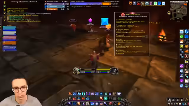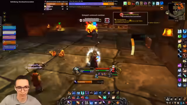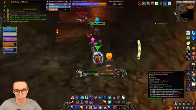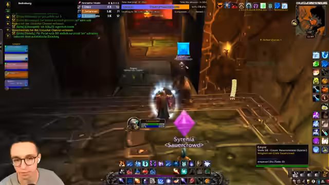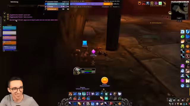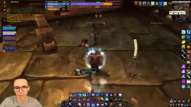 08:28:52Der Stream beginnt mit der Vorbereitung auf einen Dungeon-Run. Der Streamer befindet sich im Blackrock Depths (BRD) und diskutiert mit dem Chat über die Konfiguration von Tastaturbindungen, insbesondere für die Arcane-Explosion. Es werden die anfänglichen Gegner und die strategische Herangehensweise besprochen, wobei der Fokus auf Vorsicht und korrektes Targeting der diversen Gruppen im Dungeon gelegt wird. Der Streamer beschreibt seine Unsicherheit in einem Raum mit vielen aggressiven NPCs, insbesondere nach einem früheren Tod in diesem Bereich.