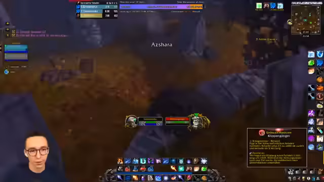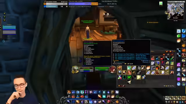 00:10:03Der Stream beginnt mit einer Hiobsbotschaft: Der geplante Tank für den Blackrock Depths Dungeon ist unerwartet verstorben und steht nicht mehr zur Verfügung. Dies erzeugt eine kritische Situation für den anstehenden Tempelrun, für den bereits eine Gruppe mit Sabiasta, Edopi und Johnsman zusammengestellt wurde. Die dringliche Suche nach einem Ersatz wird gestartet, unter anderem wird Sun Glitter angeschrieben. Gleichzeitig wird auf den gewaltigen Aufwand hingewiesen, der betrieben wird, um schnellstmöglich Level 60 zu erreichen und die damit verbundenen Pläne für Rust zu erwähnen.