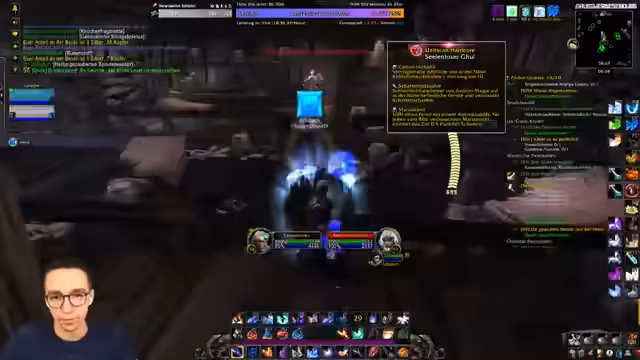 00:31:08Da keine Tanks verfügbar sind, wird der Plan für den Tempelrun verworfen. Stattdessen wird die Gruppe auf Kevin, einen erfahrenen Magier, erweitert. Es entsteht eine neue Theorie: Zwei Magier könnten die Aggro am Endboss untereinander durchspielen und ihre defensiven Fähigkeiten nutzen, um den Kampf zu bestehen. Gleichzeitig werden alternative Pläne für andere Dungeons wie BRD mit Level 60 Spielern oder der Besuch der Westlichen Pestländer als alternative Ziele diskutiert.