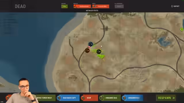 06:35:25Das Team stößt auf eine offenbar unbewachte Base, die schnell ausgeplündert wird. Anschließend kommt es zu einem überraschenden Kampf, bei dem mehrere Gegner auftauchen. Nach dem hitzigen Gefecht, in dem einige Teammitglieder sterben, zieht sich das Team in den Camper zurück, um sich zu reorganisieren und alle mit den gefundenen Betten zu versorgen.