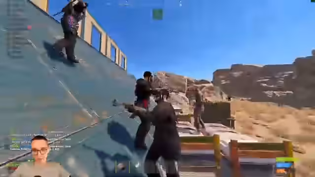 11:42:01Das Stream-Team konzentriert sich auf die Verteidigung und den Angriff auf eine Raidbase. Es kommt zu heftigen Auseinandersetzungen, bei denen das Team aus verschiedenen Gründen, wie fehlendem Heilungsmittel oder Munition, in Bedrängnis gerät. Die Lage ist chaotisch, und es wird viel über das Verhalten anderer Spieler und den aktuellen Stand der Kämpfe diskutiert, die sich hauptsächlich um die Kontrolle der Raidbase drehen.