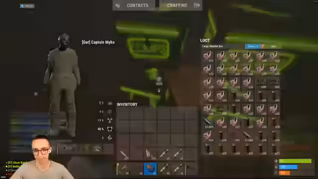 01:15:36Das Team konnte erfolgreich zwei Türen einer Base raiden, looten und sich wieder zurückziehen, was als strategischer Erfolg gewertet wird. Es wird die Absicht bestätigt, tief in die Base einzudringen, wobei die Schusspräzision einzelner Teammitglieder kritisiert wird. Der Plan beinhaltet, einen Sack (Bag) in der Nähe von Arctus zu deponieren und für einen bevorstehenden Raid mit voller Ausrüstung, darunter tausend Stoff und Logis, vorbereitet zu sein. Dies geschieht, während ein Teammitglied abwesend ist, um Ressourcen zu sammeln, während andere bereits am Ort sind.
