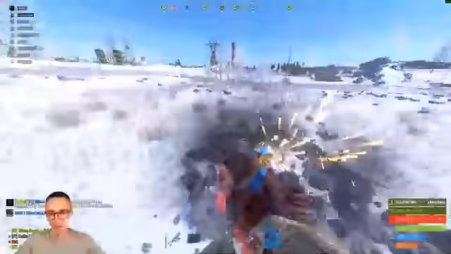 01:31:29Der Raid auf eine Basis im Arktis-Gebiet beginnt mit dem Einsatz von Raketen, um Dächer und Wände zu brechen. Nachdem das Team durch mehrere Schichten der Base vorgedrungen ist, wird der Core freigelegt und das Gebäude wird systematisch ausgeplündert. Es kommt zu Kampfhandlungen, bei denen Gegner eliminiert werden und das Team selbst Verluste hinnehmen muss. Nachdem alle wichtigen Ressourcen, wie Sulfur und Komponenten, aus der Basis geholt wurden, wird der Rückzug angetreten, um die geraubten Güter in Sicherheit zu bringen.