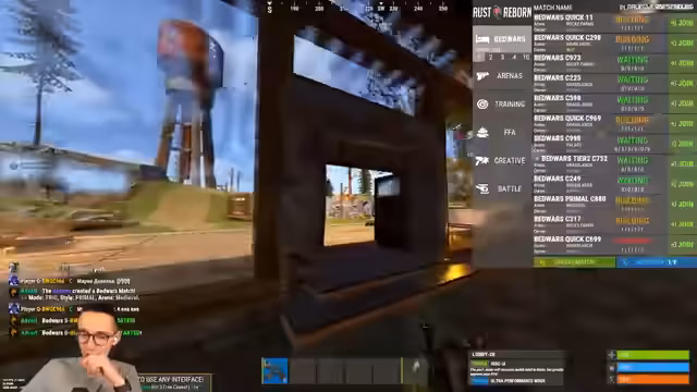 00:12:34Myko stellt die Trust-in-Rust-Map mit veränderten Monuments vor. Keycards sind deaktiviert, alle Türen sind offen, was freien Zugang zu Bereichen wie Launch Site, Redtown und Straightened ermöglicht. Das Event folgt einem festen Schema: 1 Stunde PvE (Bauzeit), 1 Stunde PvP (Punkte sammeln durch Kills und Events) und 2 Stunden Raid-Phase (TC-Zerstörung für 40 Punkte pro Base). Dog-Tags müssen ähnlich wie bei Twitch Rivals in der eigenen Base deponiert werden, um Punkte zu sichern. Die Gather-Rates sind auf 20-fach erhöht, Kisten sind modded und respawnen schnell.