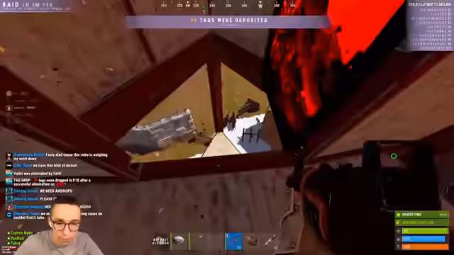 03:23:33Durch massenhafte Air-Drop-Lieferungen und Charity-Redemptions überfluten High-Tier-Geräte (AKs, Holos, Spitzhacken) das Team-Inventar. Spieler diskutieren die monetäre Dimension: Ein 100€-Spende entspricht 10 AKs, die direkt im TC deponiert werden. Während Server-FPS-Probleme und langsame Airdrops moniert werden, sichert das Team seine Base mit explosives-geladenen Turrets. Der Fokus verschiebt sich von purem Survival zum strategischen Taktieren – Dog Tags werden gesammelt und im TC deponiert, um Punkte für den Endsieg zu sichern.