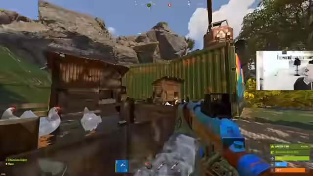 01:01:15Ein geplantes Raid auf eine Snowbase wird erfolgreich durchgeführt. Obwohl die Base zunächst leer wirkte, wird überraschend wertvoller Loot wie eine Facemask und Metal-Falls erbeutet, was trotz des Einsatzes von 12 Raketen als profitabler Sieg gewertet wird. Der Streamer beschreibt die Base als 'echten Juicer' und plant, die erbeuteten Ressourcen zu transferieren.