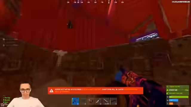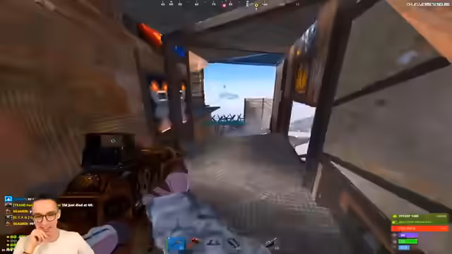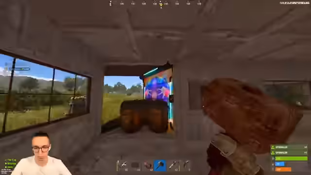 09:12:58Ein Spieler wird immer noch beschossen und es wird vermutet, dass er trollt. Vier Rockets werden gerollt. Ein Spieler ist im Stiliefer und wird abgeholt. Es wird vermutet, dass sich der Loot in einem der Außer-TCs befindet. Die Spieler planen, die Fenster rauszunehmen, um in die Berry Base einzudringen. Ein Spieler wird von einem DB getroffen. Ein Spieler ist im Busch draußen tot. Die Spieler haben wenig LK-Schuss und keine Expo Muni mehr. Ein nackter Scouter wird entdeckt. Es werden Berries mitgenommen. Ein Bradley-Stump soll noch sein. Die Spieler sind im Shooting Floor gefallen. Es wird vermutet, dass sich der Loot in den Outside-TCs befindet. Die Spieler planen, die Fenster rauszunehmen, um in die Berry Base einzudringen. Es wird überlegt, die Turrets aufzuheben. Eine Windmühle wird an die Batterie angeschlossen. Eine DB wird erwartet. Ein Spieler ist naked und shift-gecrouched. Es passieren seltsame Dinge. Die Automatisierung ist am Platzen.