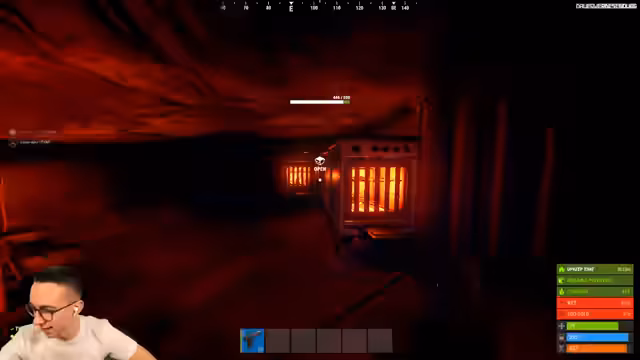 08:49:31Es wird geprüft, ob der Core offen ist und die Basis wird kurz erkundet. Es wird festgestellt, dass nicht mehr viel Gunpowder vorhanden ist, aber noch genug für ein paar Rockets. Es werden 5 C4 gecraftet und die vorhandenen 20 Rockets als ausreichend bewertet. Die Spieler stellen fest, dass die Basis bis zum offenen Core drei Single- und eine Garage-Türen hat. Eine Color wird für den Raid bereitgestellt und die Ausrüstung wird zusammengesucht. Es wird überlegt, ob eine Reihe Rockets und 5 C4 für den Anfang reichen. Die Spieler einigen sich darauf, Crude Oil in Low Grade umzurechnen und geben dem Chat 10 Minuten Zeit dafür. Alles, was in der Basis zu Loot verarbeitet werden kann, wird umgerechnet, einschließlich Crude Oil, Animal Fat und Logit. Die Farmstats eines Spielers werden überprüft, was zu Spekulationen führt, was er gefarmt hat.
