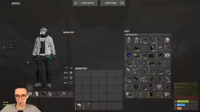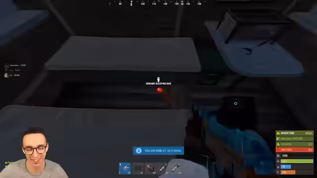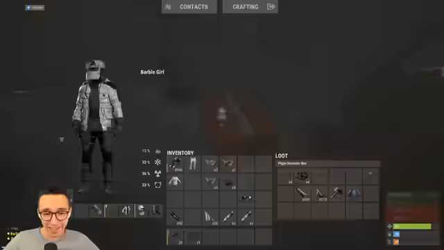 11:25:50Nach einem erfolgreichen Raid wird über den gesammelten Loot gesprochen. Es wird festgestellt, dass die geraubte Basis sehr arm war und nur wenig Beute bot. Der Streamer hat jedoch eine große Menge Stoff pro Pflanze geerntet, was ihn etwas peinlich stimmt. Gleichzeitig werden Probleme mit der Beuteraumverteilung der eigenen Base angesprochen, da der Inventar und Rucksack voll sind und nicht genug Platz für Kisten vorhanden ist. Die Bettenräume werden als nutzlos angesehen, wenn Gegner eindringen.