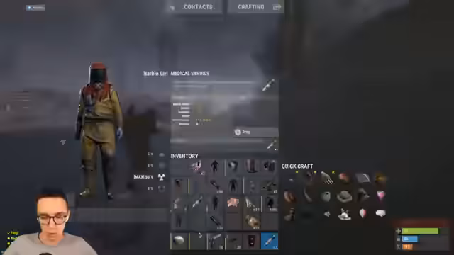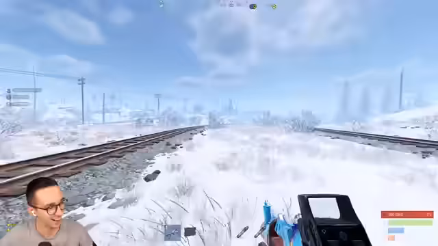 11:50:35Ein begegnung mit einem Händler (Vendor) führt zu einem günstigen Geschäft: Jackys werden für nur 50 Scrap gekauft. Kurz danach kommt es zu einem PvP-Zusammentreffen, als ein Spieler über die Schien läuft und angegriffen wird. Der Streamer und seine Gruppe greifen an, doch der Gegner nutzt Hesi-Bait, indem er seine Schutzausrüstung auszieht, um nicht beschossen zu werden. Dies führt zu einer kurzen, intensiven Schießerei.