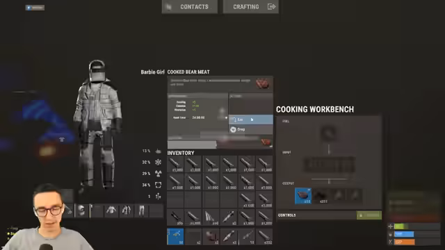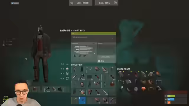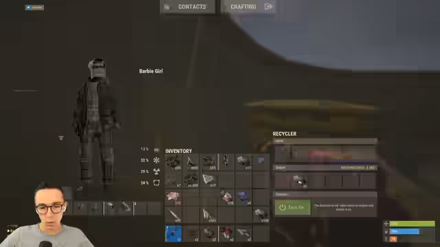 00:02:41Zu Beginn des Streams stehen massive Ressourcenengpässe im Fokus. Zwar wurden kurz zuvor Sulfo und Holz im Shop gekauft, doch alles ist bereits wieder verbraucht. Der Verlust der wichtigen Ressourcen führt zu großer Nervosität, insbesondere da keine Blaupausen für den Bau einer Barry Base vorhanden sind. Die Base selbst ist intakt, doch der Verlust von Waffen im Loot und die Angst vor Überfällen auf das Lager wachsen.