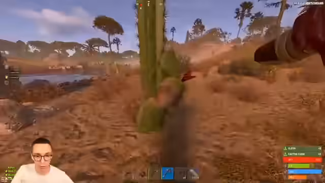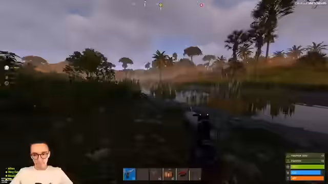 00:26:49Während des Streams kommt es zu PvP-Kämpfen mit anderen Spielern. Das Team stößt auf bewaffnete NPCs und andere Spieler, die mit Fahrrzeugen und Waffen ausgestattet sind. Es gelingt ihnen, einen dieser Spieler zu eliminieren und wichtige Beute wie Waffen-Kisten zu looten. Der Streamer zeigt Begeisterung über das Gameplay, ähnlich wie in Rust, betont aber, dass die NPCs hier viel klüger sind. Er sammelt viele Ressourcen wie Pflanzenteile und Metals, um sich Rüstung und Ausrüstung herzustellen.