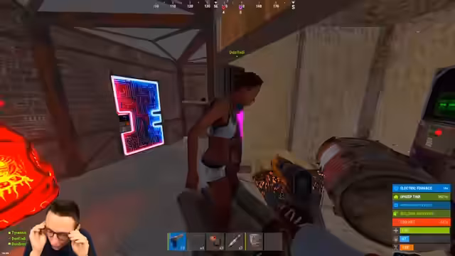 01:40:24Im Spiel Rust sucht der Streamer nach seinem Teammitglied und sucht vergeblich nach einem Boot, um sich zu treffen. Er ist frustriert, da er das Boot nicht findet und sein Teammitglied nicht antwortet. Er beschließt, das Event zu solo spielen. Der Streamer sucht nach alternativen Wegen, um mit seinem Team zu kommunizieren und das Ziel zu erreichen, auch wenn die Zusammenarbeit schwierig scheint.
