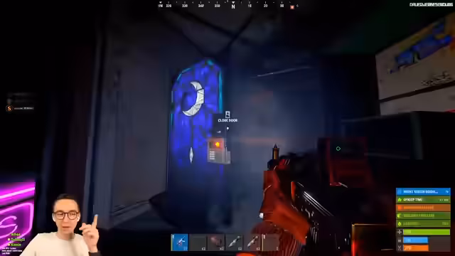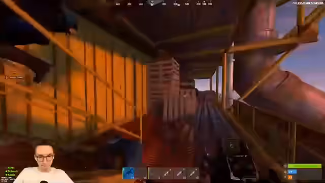06:21:20Die Gruppe trifft auf eine große Raid-Base mit mindestens zwei Gegnern im Inneren. Nach intensiver Auseinandersetzung werden beide Gegner eliminiert. Der Streamer stellt Fragen zum Loot des Gegners, insbesondere zu dessen 'Full Heavy'-Ausrüstung, und kommt auf die Idee, eine leichte Leiter für den Einstieg zu verwenden, was jedoch zu technischen Schwierigkeiten und misslungenen Sprüngen führt.