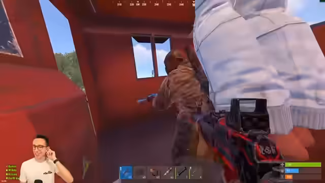 02:49:31Der Streamer und sein Team greifen die Basis der Nachbarn an. Es kommt zu heftigen Kämpfen, bei denen Gegner in der Base ausgeschaltet werden. Besonders ein Spieler auf 220 wird fokussiert, mehrere Hits verzeichnet und letztendlich eliminiert. Die Situation ist chaotisch, da weiterhin Gegner um die herumlaufen und von verschiedenen Seiten auf das Team schießen. Ein Spieler stirbt im Kampf, doch das Team bleibt dran und versucht, die Kontrolle über die Gegend zu gewinnen.