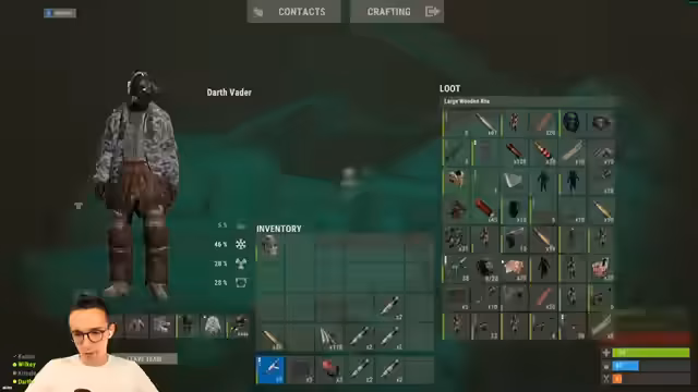 06:10:19Die gelootete Beute muss nun in der eigenen Base organisiert werden. Das Inventar ist überfüllt, was das Lagern erschwert. Die Kisten sind 'böse' und droppen automatisch Loot, selbst wenn man versucht, aufzuräumen. Es wird entschieden, eine dedizierte Kiste für alle AKs zu erstellen, um den Überblick zu behalten. Auch für andere Waffen wie MP5s und Shotguns werden separate Kisten in Betracht gezogen. Die Frage nach der Lagerung von Components und die Idee, später einen Shop zu betreiben, werden ebenfalls diskutiert.
