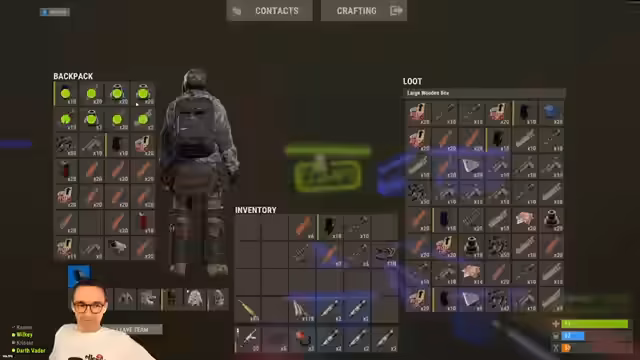 09:57:58Eine zuvor geplante Nacht-Operation wird verworfen, da keine Nachtsichtgeräte vorhanden sind. Stattdessen konzentriert sich der Streamer auf die Inventarverwaltung. Der Rucksack ist komplett mit Metz gefüllt, und es werden leere Inventory-Slots gefüllt. Eine weitere Base der Gegner wird im Visier gehalten, um deren Größe und mögliche Beute einzuschätzen. Diese Basis scheint klein und potenziell überfallen zu werden.