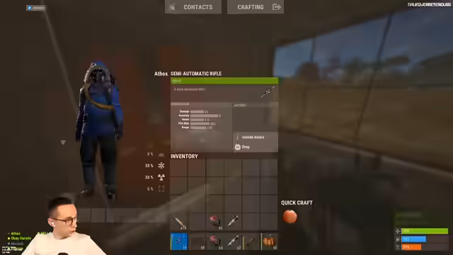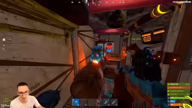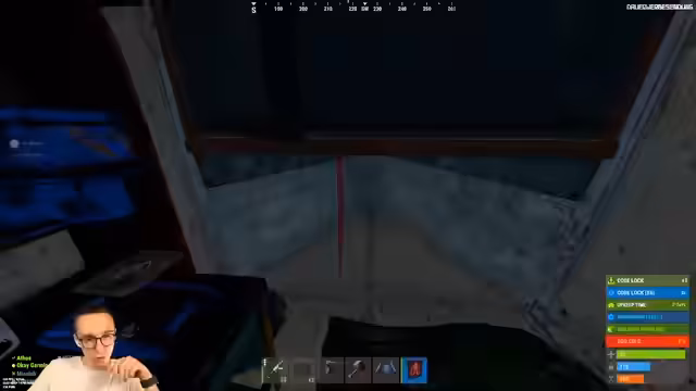 08:01:17Der Streamer platziert einen Bunker und experimentiert mit einer Open-Core-Konstruktion. Er zeigt stolz einen Pieker, der in den OpenCore gebaut wurde, und berichtet von einem erfolgreichen Raid, bei dem er mit dieser ungewöhnlichen Taktik eine Base erobert hat. Im weiteren Verlauf diskutiert er mit Pausenbrot über die beste Platzierung für Kisten und baut den Bunker mit mehreren Ebenen für diverse Ressourcen wie Sulfur, Weapons und Components aus.
