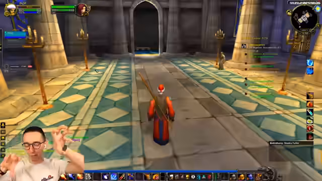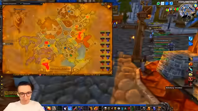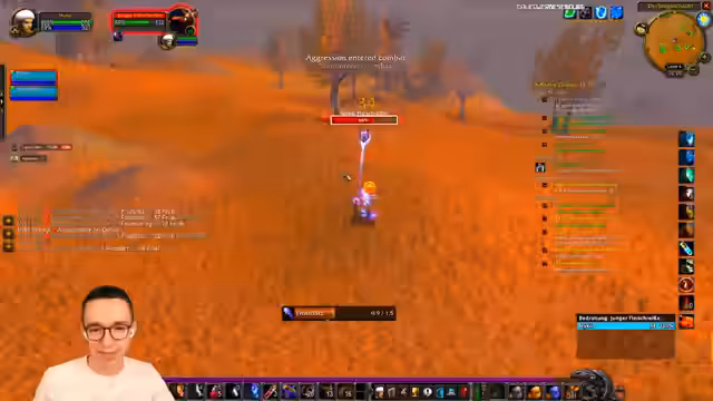 00:47:05Der Kampf und das Farmen von Ressourcen mit Hilfe von Tränken wird fortgesetzt, wobei die Herausforderung vollen Inventars und die Notwendigkeit selektiven Verkaufs besprochen wird. Die Debatte über UI-Überforderung wird mit Vorschlägen zur Anpassung von Add-ons wie BAM für akustische Hinweise fortgesetzt. Kritik am Quest-Log-System mit seinem Limit von 20 aktiven Quests wird geäußert. In der Vorbereitung auf den Event-Tag am 27. wird ein Discord-Channel für den Austausch von UI-Screenshots und Add-on-Konfigurationen vorgeschlagen. Nostalgische Momente mit dem Spiel- und Welt-Design von WoW werden gewürdigt.