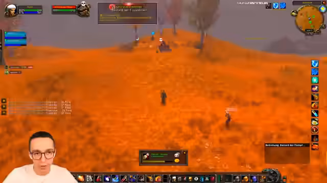 07:50:18Westfall wird als liebevoll gestaltetes, aber riskantes Gebiet beschrieben. Gefahren durch hohe-Level-Mobs (z.B. Elementare bei lvl 14) werden hervorgehoben – besonders in Randzonen. Der Flugpunkt bei Sentinel Hill wird für Reisen nach Stormwind genutzt. Quest-Management wird optimiert: Unnötige Items (Feder, Fleisch) werden verkauft, während Rezepte behalten werden. Kooperative Quests wie die Diebesquest im Haus bei Sentinel Hill werden vorbereitet. Line-of-Sight-Spielmechaniken gegen zaubernde Humanoiden werden angedeutet. Ein Aberglaube bezüglich eines schwarzen Taschenbeutels wird als unlogisch abgetan.