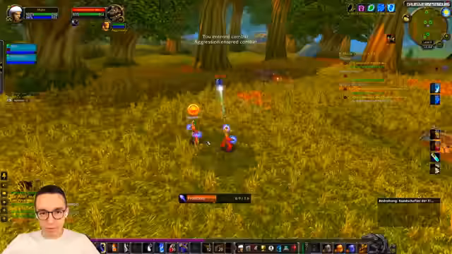 01:08:20Nach dem Murloc-Zwischenfall passt der Spieler seine Strategie an: Er arbeitet eng mit Aggression zusammen, um Gegner wie Hogger zu besiegen, und nutzt Klassenfähigkeiten wie Frostnova und Arkane Explosion effektiv. Diskutiert wird auch der Einfluss von Umgebungsfaktoren wie Wasser, das Bewegungen verlangsamt, und die Bedeutung von korrektem Positionierung im Kampf. Der Streamer demonstriert, wie man durch abwechselndes Aggro-Ziehen und Zauberwirfe in Gruppenquests Erfolge erzielt und verweist auf die Herausforderung, dies alleine zu meistern.