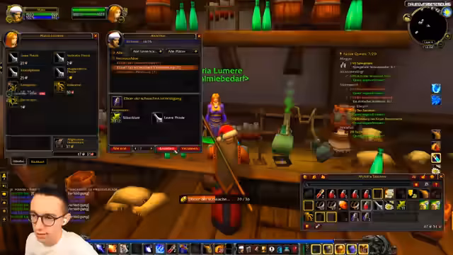 02:35:10Maiko intensiviert sein Alchemie-Crafting, kauft Reagenzien und stellt Tränke wie schwache Heiltränke und Verteidigungselixiere her. Parallel dazu plant er die Gründung einer Gilde namens 'Sauerkraut', um die Community im Spiel zu bündeln. Er besucht den Gildenmeister in Stormwind, erwirbt eine Gildensatzung für 10 Silber und bereitet die Namensgebung vor. Die Gilde soll als Kern für zukünftige Aktivitäten und das Event dienen.