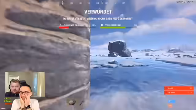 04:04:30Es kommt zu internen Unstimmigkeiten über Waffen und Munition. Maiko beschwert sich, dass ihm keine AK zur Verfügung gestellt wird, was zu einem verbalem Schlagabtausch führt. Das Team diskutiert über den Verlust von Ausrüstung ('Stoff') und muss die Munition und Ressourcen neu verteilen und verwalten. Die Kommunikation ist oft angespannt, aber die Spieler agieren als Team.