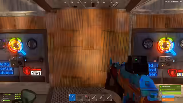 02:42:16Nachdem der erste Teil der Basis erfolgreich gestürmt wurde, wechselt der Fokus auf die Kernbereiche. Ein Spieler brecht durch eine Mauer, während andere mit Rocket-Launchern die Verteidigung angreifen. Plötzlich schießen feindliche Spieler aus einer benachbarten Basis auf das Team, was eine Panik auslöst. In der feindlichen Basis wird ein Spieler als Cheater beschuldigt, der das Team "ge-carried" hat und nun alles despawnt.