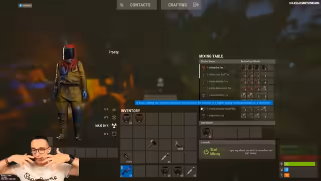 08:46:10Der Streamer erklärt den Begriff "Snowball" im Kontext von Rust-Servern. Dies beschreibt das Vorgehen, wie man auf einem bereits fortgeschrittenen Server mit einfachen Waffen beginnt und sich durch erfolgreiche Kämpfe und Loot immer bessere Ausrüstung aneignet. Des Weiteren wird die Wirkung von Crafting-Tees diskutiert, insbesondere im Hinblick auf die "Crafting Quality". Es wird gerätselt, was genau eine höhere Crafting Quality von 85% bedeutet, ob es die Wahrscheinlichkeit für mehr Slots in gecrafteten Gegenständen erhöht oder andere Vorteile bietet. Die Effizienz von Hazmat-Anzügen mit mehreren Slots für den Schutz vor Strahlung wird ebenfalls erörtert, wobei festgestellt wird, dass die maximale Strahlungsresistenz durch den Hazmat-Anzug selbst begrenzt ist und zusätzliche Slots hier keinen weiteren Vorteil bringen.