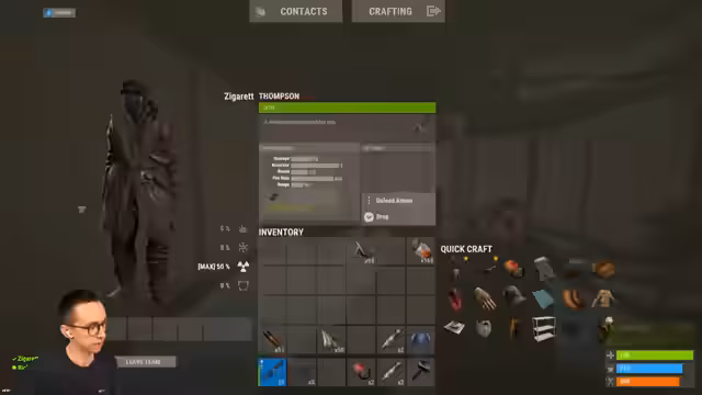 02:47:56Es kommt zu einer Verfolgungsjagd und einer Konfrontation mit einem gegnerischen Spieler. Der Streamer berichtet vom Gefühl des Sieges, auch wenn er annimmt, nur aufgrund von Glück gewonnen zu haben. Die anschließende Loot-Inspektion der abgefarmten Basis enthüllt eine große Menge an Ressourcen, darunter Gears, Tech Trash und Rohstoffe, was als sehr profitabel und erfreulich empfunden wird und das Gefühl vermittelt, endlich Fortschritt gemacht zu haben.