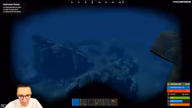 05:19:37Der Streamer angelt, um Blue Cards zu erhalten, und bemerkt, dass es einfacher ist, wenn man die Maus beim Angeln bewegt. Er bereitet sich auf das Tauchen vor und hofft, keine Haie zu treffen. Er findet zwei große Kisten unter Wasser und freut sich über die Advanced Fragmente, die er daraus erhält. Er hat weiterhin Probleme mit seinem vollen Inventar und muss Gegenstände wegwerfen, um Platz zu schaffen. Er bedauert, kein Basic Fragment gefunden zu haben, da dies sehr wichtig für den Early Game wäre. Er plant, seine Basis woanders zu bauen und möchte nur einmal schnell Loot sammeln. Er trinkt einen Trank, um mehr Animal Fat aus den Fischen zu erhalten und sein Inventar zu entlasten.