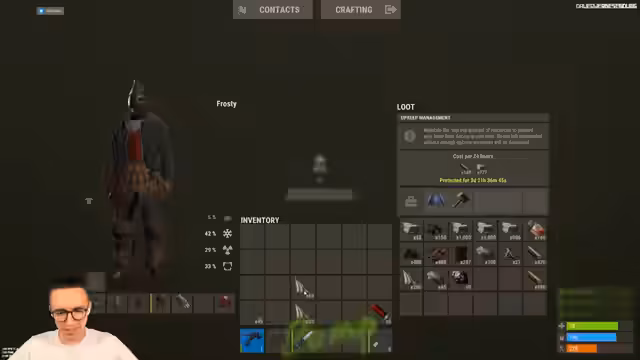 05:51:11Der Spieler plant, seine Basis in einem entspannten Tempo weiter auszubauen und eine Workbench 2 zu errichten. Es wird überlegt, ob Monument-Runs oder das Looten von Scientist- und Underwater Crates vorteilhafter wären. Letzteres bietet den Vorteil der Sicherheit, der Möglichkeit, Spearguns gegen Gegner einzusetzen, und der Beschaffung von Tarp für eine Berry Base. Der Spieler äußert den Wunsch, noch am selben Tag eine Berry Base zu errichten. Eine kurze Ablenkung entsteht durch eine Diskussion über den Ingame-Shop und das Erscheinen neuer Skins, wobei der Spieler feststellt, dass der Shop bei ihm noch nicht verfügbar ist, während andere Chat-Teilnehmer das Gegenteil behaupten. Es wird die Möglichkeit erörtert, Harbors zu swipen, was jedoch als unwahrscheinlich eingeschätzt wird. Die Nachtfahrt zur Base wird als schwierig empfunden, da die Sicht schlecht ist und der Spieler sich unwohl fühlt. Trotzdem bleibt der Spieler motiviert, seine Pläne umzusetzen und die notwendigen Ressourcen zu sammeln.