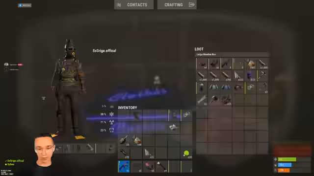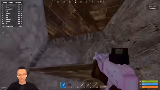 00:18:54Nach dem Umstieg auf das PC-Setup im neuen Zuhause startet der Stream in Rust. Er ist zunächst von den 130 FPS auf dem neuen PC begeistert, fühlt sich aber durch die geänderten Einstellungen und den längeren Abstand zum Spiel unwohl und spielt sich erst wieder ein. Der Streamer beginnt mit dem Sammeln von Ressourcen in einem Outpost, stößt aber auf Probleme, da der Shop keine nützlichen Gegenstände für Scrap anbietet. Er beschließt, stattdessen selbstständig Blueprints zu sammeln und seine Waffen herzustellen.