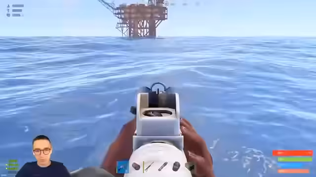 00:41:55Auf der Suche nach Ressourcen und zur Erkundung der Szenerie unternimmt der Streamer eine Tauchaktion. Er erkundet einen Hafen und tunnelartige Strukturen, wobei er erfolgreich Tech Trash und andere wertvolle Beute aus einer rivalisierenden Basis stiehlt. Der Streamer nutzt diese Aktion, um die frische Rivalität zu provozieren und demonstriert, dass der Angriff das Team nicht aus dem Konzept gebracht hat.
