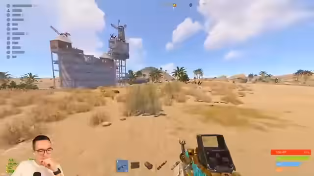 02:30:34Ein kleineres Team wird mit einem Heli zu einem möglichen Standort für eine Ex-Wasser-Station geflogen, um das Gelände zu sondieren. Man vermutet, dass dieses Gebiet bereits von anderen Spielern eingezäunt und verteidigt wird. Das Scouting dient dazu, eine Entscheidung über den Bau eines Towers und die spätere Expansion zu treffen. Gleichzeitig wird ein potenzieller Ort für eine mobile Base namens Compound in Nord-Nordwest-Richtung in Betracht gezogen.