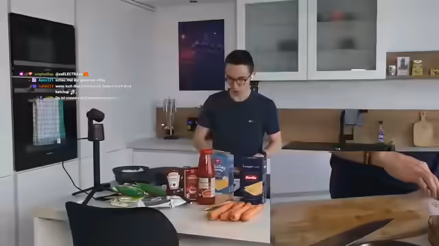 00:10:35Das Kochen beginnt mit der Vorbereitung der Zutaten. Es gibt Diskussionen über das ungewöhnliche Rezept von Original Lab, das Mett statt Hackfleisch vorsieht. Dies wird als gewürzte, frischere Alternative zum Rohverzehr gesehen. Zwiebeln, Cherrytomaten, Möhren und eine ungarische Salami (Chorizo als Ersatz) werden vorbereitet. Ein besonderer Streitpunkt ist die Zutat Ketchup, die in größeren Mengen als erwartet verwendet wird, um den Geschmack zu intensivieren.