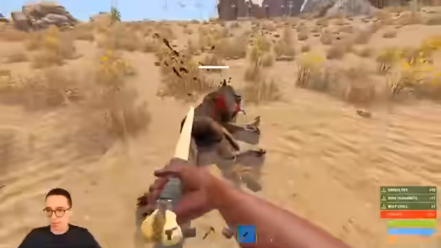 05:04:59Nach dem Neustand im Spiel stehen grundlegende Ressourcen wie Holz und Stein im Fokus. Der Streamer sammelt fleißig ein und stellt fest, dass Stein besonders knapp und schwierig zu farmen ist. Beim Bauen seiner Basis in einem unübersichtlichen Gebiet erleidet er einen ersten, ernsten Rückschlag: Er verliert wichtige Bauteile wie Metal-Pick und Bogen, was seine Pläne massiv behindert und seine Situation als '50 HP and a dream' beschreibt.
