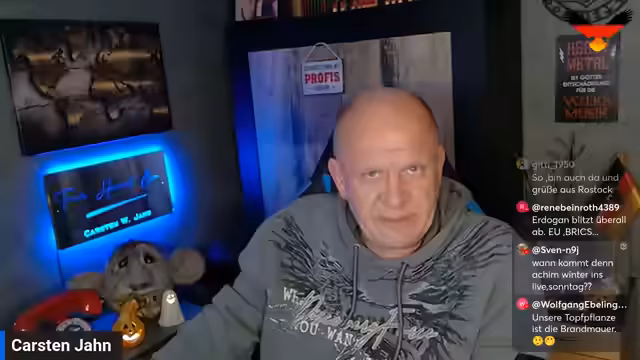 00:56:55Der Streamer gibt aktuelle Zuschauerzahlen auf seinen verschiedenen Kanälen bekannt und kündigt Terminänderungen für kommende Veranstaltungen an. Der Bürgerdialog in Jüterbog mit Oliver Kirchner, ursprünglich für den 13. November geplant, wird aufgrund von Terminschwierigkeiten Kirchners auf den 20. November verschoben. Des Weiteren wird ein Jahresrückblick mit Ulrich Sigmund am 23. November stattfinden. Ein weiterer Live-Stream mit René Springer ist für Ende November geplant, der genaue Termin wird noch bekannt gegeben. Er erwähnt auch die Debatte um die Neuauszählung von Stimmen beim BSW und die AfD, bei der Unstimmigkeiten und mögliche Wahlbetrüge aufgedeckt wurden, die jedoch oft zu spät ans Licht kommen, um Konsequenzen zu haben.