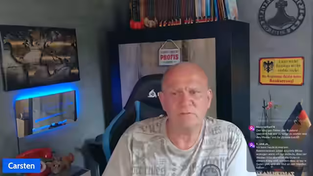 00:10:01Der Stream startet um 18 Uhr mit einer ausführlichen Begrüßung der Zuschauer, welche aus verschiedenen Regionen Deutschlands und sogar aus Thailand stammen. Der Streamer berichtet von anhaltendem Bombenwetter, wobei speziell im Harz extreme Unwetter mit Regen, Hagel und Gewittern stattfinden. Er erwähnt einen eigenen Hagelschaden am Auto und durchgeschlagene Fenster, betont aber, dass Sachschäden im Vergleich zur persönlichen Sicherheit vernachlässigbar sind.
