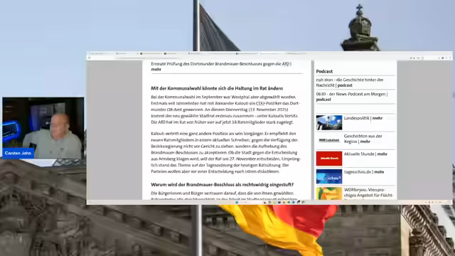 00:33:36Der Streamer thematisiert die Besetzung des Brandenburger Tors mit dem Ruf 'Jalla, jalla, Intifada'. Er identifiziert die Besetzer nicht als Palästinenser, sondern als Linksextreme, möglicherweise vermischt mit 'Palitanten', und kritisiert die Berliner Polizei und Politik für das Zulassen dieser Aktion. Er zieht einen Vergleich zu einer früheren Besetzung durch 'Identitäre' im Jahr 2016, die von den Medien als 'Rechte besetzen das Brandenburger Tor' bezeichnet wurde, während die aktuelle Aktion als 'Aktivisten gelangen auf Brandenburger Tor' verharmlost werde. Er verweist auf Berichte des Verfassungsschutzes über die Verbrüderung von Linksextremen und Islamisten in Berlin und kritisiert den Zentralrat der Juden, insbesondere Dr. Josef Schuster, für seine Heuchelei, da dieser die AfD als größte Gefahr sehe, während solche Aktionen stattfinden. Anschließend berichtet der Streamer über eine 'gute Nachricht' aus Dortmund: Die Bezirksregierung hat den 'Brandmauer-Beschluss' des Dortmunder Stadtrats gegen die AfD als rechtswidrig eingestuft und aufgehoben. Dieser Beschluss sah vor, Abstimmungen auszuschließen, bei denen eine Mehrheit nur mit Stimmen der AfD zustande kommen würde. Der Dortmunder Oberbürgermeister Thomas Westphal (SPD) hatte sich geweigert, den Beschluss zu beanstanden und wurde dafür von der Bezirksregierung mit einem Disziplinarverfahren belegt. Der neue CDU-Oberbürgermeister Alexander Kaluti empfiehlt, die Aufhebung des Brandmauer-Beschlusses zu akzeptieren. Der Streamer lobt diese Entscheidung als Sieg des Rechtsstaats und kritisiert SPD, Grüne und Linke für ihren vorsätzlichen Verstoß gegen das Grundgesetz.