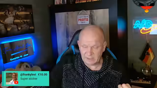 01:45:32Zum Abschluss des Streams interagiert der Streamer intensiv mit seiner Community, grüßt Spender und Unterstützer und kündigt an, seinen Zuschauern einen 'Raid' zum Kanal 'Digitaler Chronist' zu ermöglichen. Er verabschiedet sich mit der positiven Bemerkung, dass die mediale Hetze gegen die AfD nichts bewirkt hat und die nun erfolgte Einstufung als 'deutsche Interessen' im Endeffekt sogar positiv zu bewerten ist. Er wünscht der Community einen schönen Abend und kündigt den nächsten Stream für den Folgetag um 18 Uhr an.