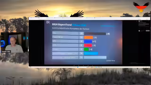 01:06:31Der Stream befasst sich intensiv mit den zuletzt gestiegenen Umfragewerten für die AfD. Insbesondere in Niedersachsen, wo bald Kommunalwahlen stattfinden, erreicht die Partei 21 Prozent, nachdem sie bereits in früheren Umfragen bei 20 Prozent lag. Eine Erklärung für diese Entwicklung findet der Streamer nicht, insbesondere da die Partei im Bund nicht in gleichem Maße zulegt. Auch in Bayern wird der AfD für die bevorstehenden Kommunalwahlen ein starkes Ergebnis zwischen 16 und 20 Prozent prognostiziert, während die CSU in puncto kommunalpolitischer Kompetenz stark verliert.