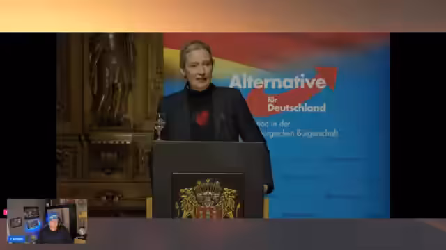 00:07:20Im Stream wird eine Rede von Alice Weidel der AfD gezeigt, in der sie vor einem möglichen Wiederkehr des Faschismus als 'Antifaschismus' warnt. Sie spricht über massive Sicherheitsprobleme bei AfD-Veranstaltungen und kritisiert die Regierungspolitik scharf. Weidel fordert eine Rückkehr zur Freiheit, eine Kontrolle der Grenzen, Abschaffung von monetären Anreizen für Einwanderung und eine grundsätzliche Veränderung der deutschen Asylpolitik.