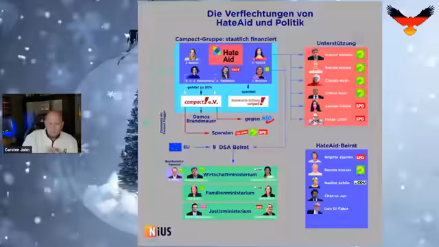 00:18:05Prognose für 2026: Regierungsinstabilität, geopolitischer Druck aus USA/Russland/China. Kritik an Meinungsfreiheits-Einschränkungen und HateAid-Netzwerk mit Verbindung zu Kampakt. Streamer berichtet von Kampagnen gegen ihn (Drohungen, Boykottaufrufe), nachdem er AfD und Familienverband kritisierte.